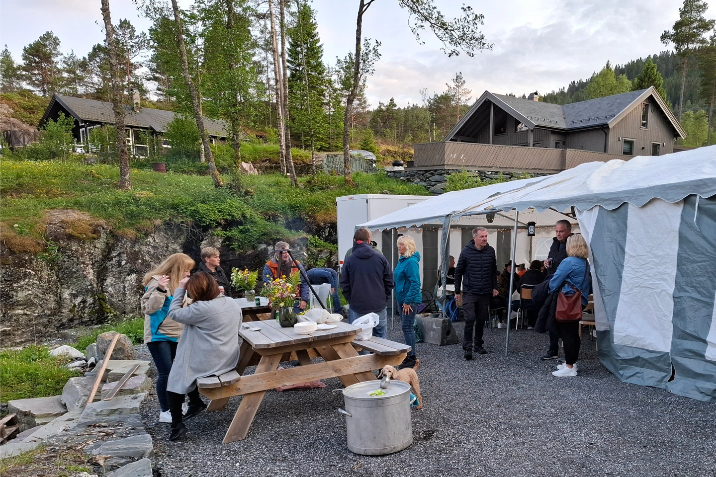 Det er aktivitetar for både store og små, med fiskekonkurranse eller ein kajakktur medan dei som ønskjer det kan kose seg med god prat, mat og kanskje eit lite glas i solveggen. Seinare blir det servert grillmat, gjerne i kombinasjon med eit felles koldtbord der alle tek med seg noko heimanfrå. Stemninga brukar å bli både livleg og lun.
